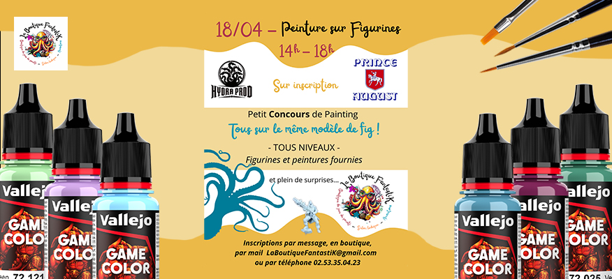 La Boutique Fantastik organise un petit concours de Painture sur Figurine le 18 avril, de 14h à 18h, directement en boutique et sur inscription...
