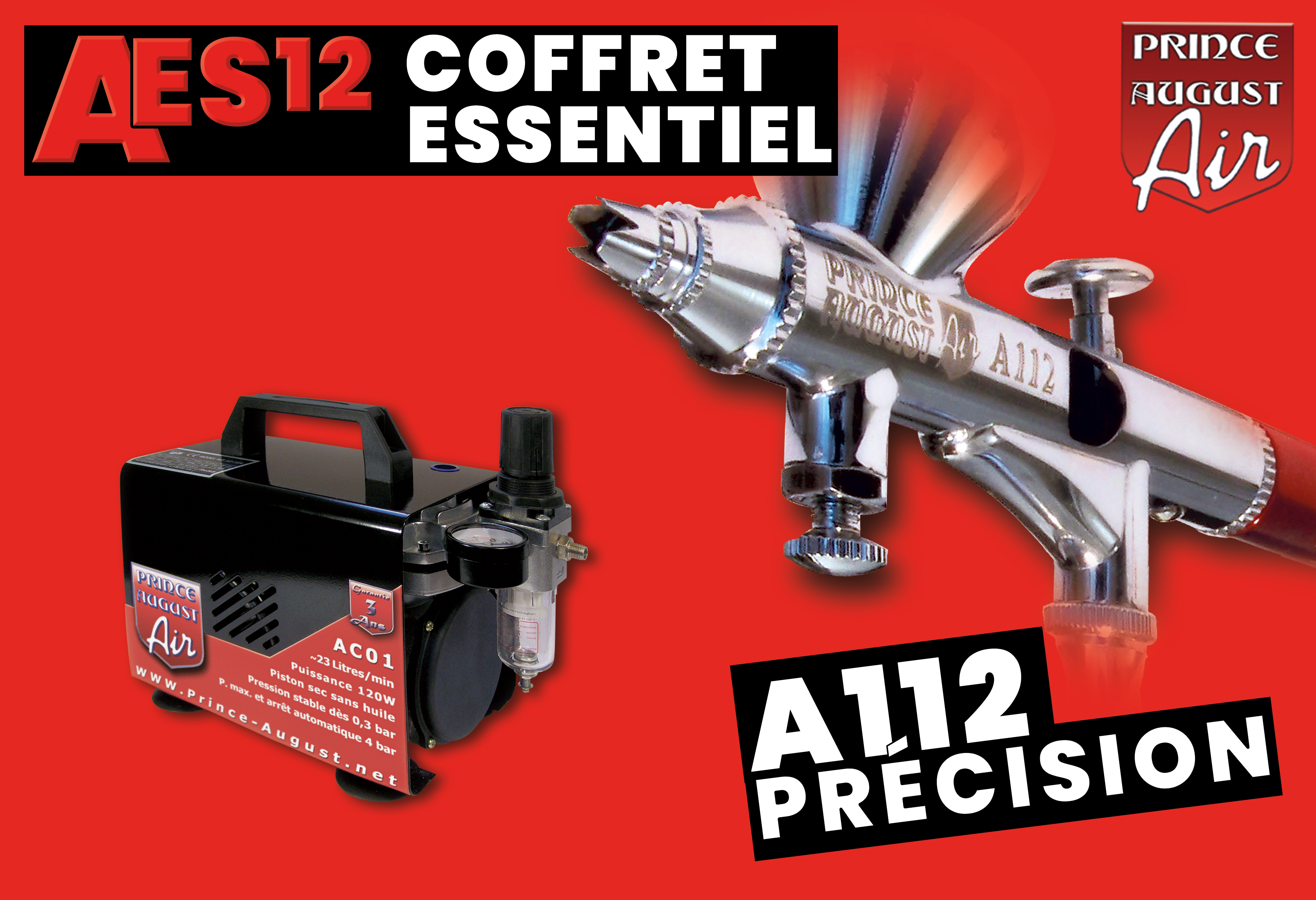 Le coffret Prince August Essentiel AES12 comprend L’Aérographe A112 Haute Définition. Le compresseur AC01 et son manomètre pour une pression d’air chiffrée.