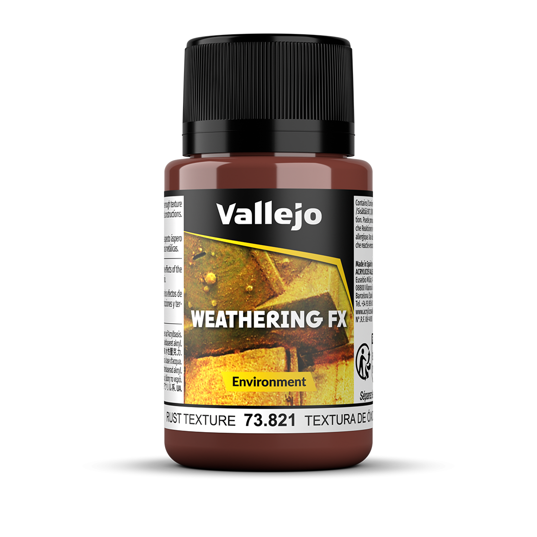 Texture rugueuse brune de la rouille. Représentez l’oxydation de zones ou de la totalité d’un véhicule brûlé ou abandonné… S’applique au pinceau ou à l’’aérographe, avec une aiguille de 0,5mm en haute pression.