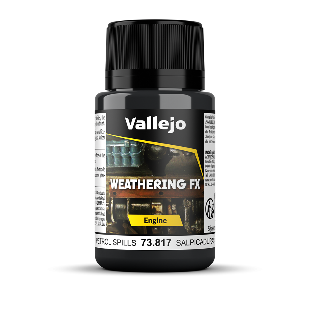 La gamme Effets Moteurs se compose de six références pour reproduire ces taches spécifiques de carburants, les coulées d’huile, les marques des bidons dans les camions et la saleté accumulée dans les compartiments moteurs, toutes ces touches de réalisme que requièrent vos réalisations. Ces produits étant réalisés à base de pigments naturels et de résine acrylique, tout votre matériel se nettoie à l’eau. Sans aucun mélange, vous obtiendrez la viscosité et le ton idéal à la reproduction de l’effet choisi.